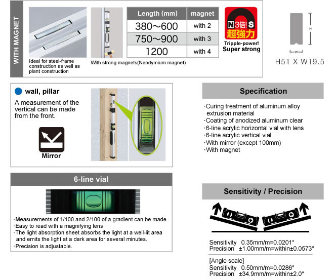 | G-LEVEL WITH MAGNET AND ANGLE SCALE for Civil engineering | With mirror | 380 | 396g | ED-38GAMN | Silver | 6 |