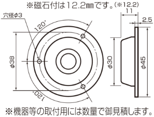 | ツバ付丸型気泡管・磁石付 | 0.50mm/m=0.0286° | φ45×12.2 | 16g | CIM | 6 |